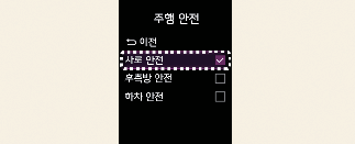 차로 안전: 차로 안전을 선택하면 차로를 이탈할 경우 경고음이 울리고 스티어링 휠이 진동하거나, 차로 이탈이 감지될 경우 차로를 이탈하지 않도록 조향을 도와줍니다.