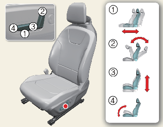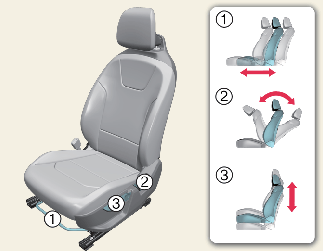 전동식 좌석 조절 장치는 모터로 작동됩니다. 조절이 완료되면 작동을 멈추십시오. 과도하게 조작하면 전기 장치가 손상될 수 있습니다.