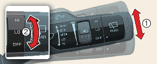 와이퍼 시스템을 구성하는 부품에 이상이 발생하여 와이퍼가 제대로 작동되지 않을 때는 「LO」 속도로 고정됩니다. 이때는 즉시 자사 직영 서비스센터 또는 서비스협력사에 점검 및 정비를 의뢰하십시오.