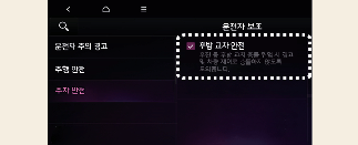 경고 음량과 핸들 진동 경고는 동시에 꺼지지 않습니다. 하나를 끌 경우, 다른 하나는 활성화 됩니다.