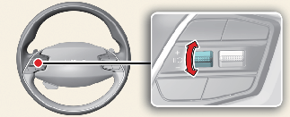 (+) 스위치를 올리거나 (-) 스위치를 내리면 스마트 크루즈 컨트롤의 속도가 현재 클러스터의 속도로 설정됩니다. 「