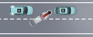 [A]: 자차, [B]: 전방 차량