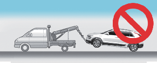 만일 두 바퀴를 통해 견인이 필요할 경우, 구동되는 바퀴를 지면에 닿지 않도록 차량을 띄운 후 견인하십시오.