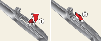 와이퍼 블레이드가 분리된 상태에서 와이퍼 암이 유리창에 닿지 않도록 주의하십시오. 유리창이 파손될 수 있습니다.