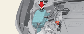 엔진 작동 중에 냉각수 보조 탱크 캡을 열지 마십시오. 분출되는 뜨거운 냉각수에 상해를 입을 수 있습니다. 엔진 시동을 끄고 엔진이 식을 때까지 기다리십시오. 이때에도 두꺼운 헝겊으로 캡을 감싸 천천히 조심스럽게 여십시오.