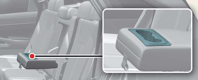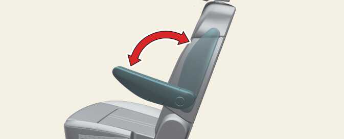 Adjustable armrest is located on each side of 2nd row seatback. To use the armrest, pull it forward from the seatback and adjust to desired angle. Pull it backward to relocate the armrest.