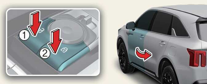 If you lock the door with the central door lock button (2), all vehicle doors will lock automatically.