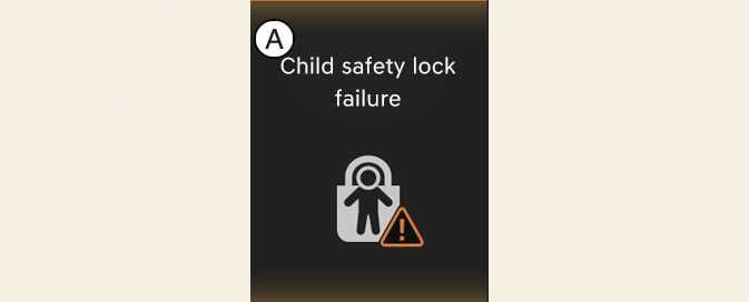 If the Electronic child safety lock malfunctions, a message is displayed and a chime will sound.
