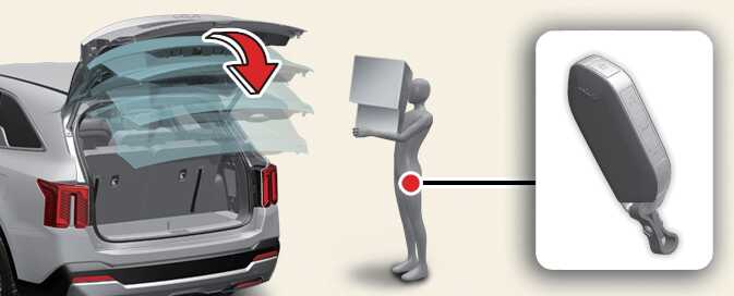 When the liftgate is open, approach the detecting area, which is 50~100 cm (20~40 inches) from behind the liftgate with the smart key in your possession. Wait for approximately 3 seconds until the chime sounds.
