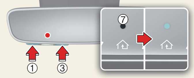 Release the buttons once the HomeLink indicator light (7) changes to Green and flashes rapidly