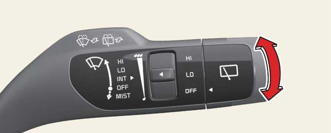 Turn the switch to the desired position to operate the rear wiper and washer.