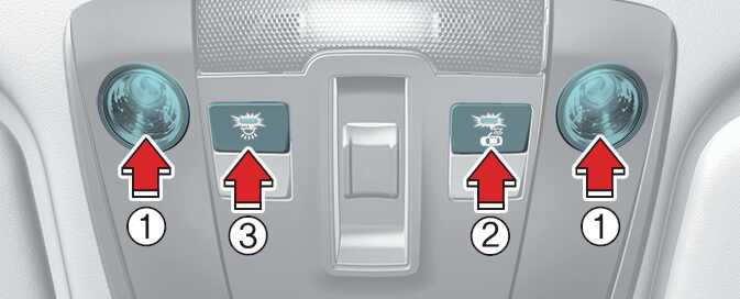 (3): Press this switch to turn the front and rear room lamps on and off.