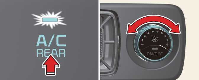 The fan speed of the 3rd row air conditioning can also be separately controlled by turning the fan speed control knob.