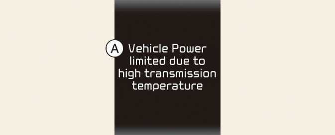 If the transmission continues to drive overheating and reaches its maximum temperature, the above warning message appears. In this case, the vehicle limits transmission power by its self protection mode.