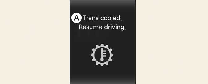 When the message "Trans cooled. Resume driving" appears, you can continue to drive your vehicle.