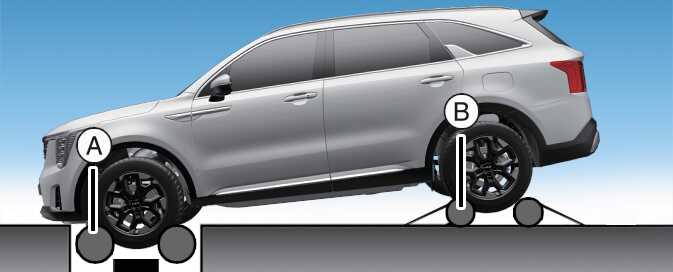 When lifting up the vehicle, do not operate front and rear wheels separately. All four wheels should be operated.