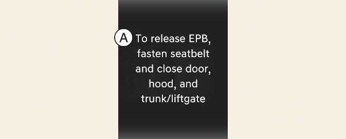 OMQ4A053001A: To release EPB, fasten seatbelt and close door, hood, and trunk/liftgate