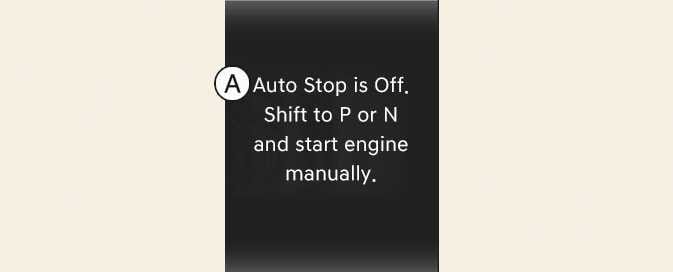 A: Auto Stop is Off. Shift to P or N and start engine manually.