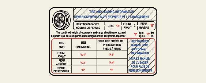 The label located on the driver's door sill gives the original tire size, cold tire pressures recommended for your vehicle, the number of people that can be in your vehicle and vehicle capacity weight.