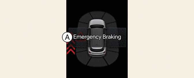 When the vehicle is stopped due to emergency braking, a warning message will appear on the instrument cluster. For your safety, the driver should depress the brake pedal immediately and check the surroundings.
