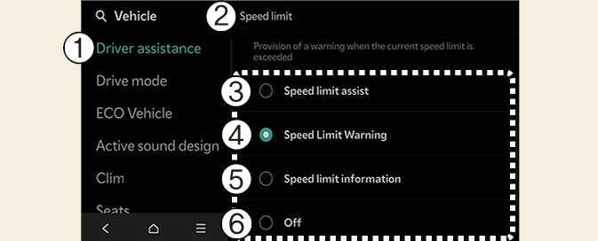 Be sure to park in a safe place before setting Intelligent Speed Limit Assist.