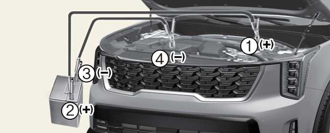 Do not allow the (+) and (-) jumper cables to touch. It may cause sparks.