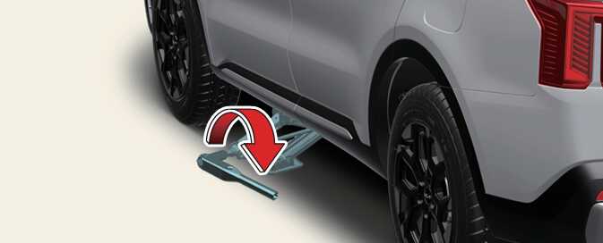 Lower the vehicle to the ground by turning the wheel nut wrench counterclockwise.