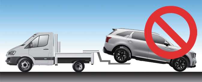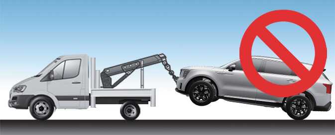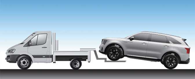 Do not tow the vehicle with four wheels in contact with the ground if it is a vehicle equipped with AT or DCT. The transmission will be seriously damaged. Make sure not to tow the vehicle connecting it with other vehicles including camper vans.
