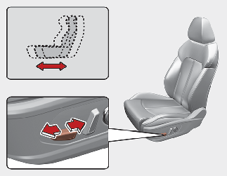 Before driving, adjust the seat to the proper position so you can easily control the steering wheel, pedals and switches on the instrument panel.