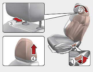 If you recline the seatback towards the front with the headrest and seat cushion raised, the headrest may come in contact with the sun visor or other parts of the vehicle.