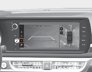 While the infotainment system screen is being displayed, press the Parking/View button (1) briefly when the gear is in D (Drive) or N (Neutral) and vehicle speed is below 15 km/h (9 mph).