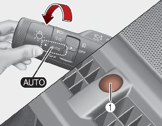 When the light switch is in the AUTO light position, the taillights and headlights will turn ON or OFF automatically depending on the amount of light outside the vehicle.
