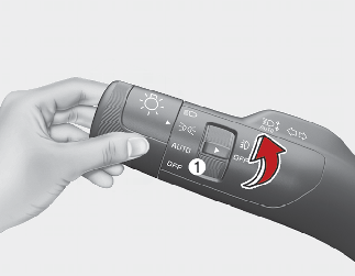 The fog lights will turn on when the fog light switch (1) is turned to the on position after the headlight is turned on.