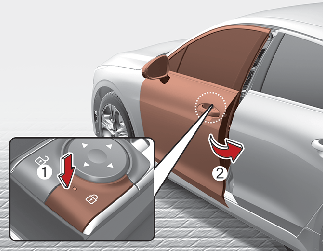 If you lock the door with the central door lock button (1), all vehicle doors will lock automatically.