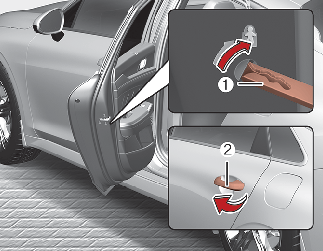 The child safety lock is located on the edge of each rear door. When the child safety lock is in the lock position (1), the rear door will not open if the inner door handle is pulled.