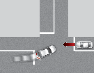 Junction Turning function will help avoid a collision with an oncoming vehicle in an adjacent lane when turning left at a crossroad with the turn signal on by applying emergency braking.