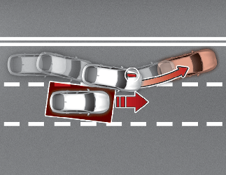 When changing lanes by detecting the lane ahead, if the function judges that there is a collision risk with an approaching vehicle in the blind spot, the function will help avoid collision by applying the brake.