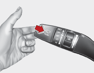 In the OFF (O) position, pull the lever gently toward you to spray washer fluid on the windscreen and to run the wipers 1-3 cycles.