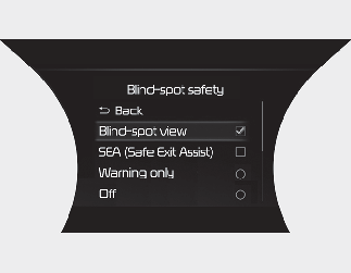 If ‘Warning Only’ is selected, Blind-Spot Collision Warning will warn the driver with a warning message, an audible warning depending on the collision risk levels.