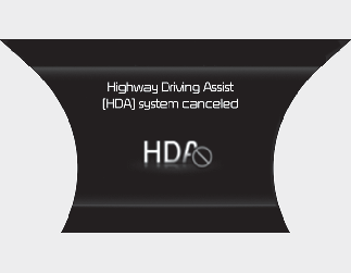 If the driver still does not have their hands on the steering wheel after the hands-off warning, the 'Highway Driving Assist (HDA) cancelled' warning message will appear and Highway Driving will be automatically cancelled.