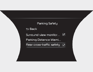 With the ENGINESTART/STOP button in the ON position, select ‘Driver Assistance → Warning volume’ from the “User Settings (LCD display) or Settings → Vehicle (Infotainment System screen)” menu to change the Warning Volume to ‘High’, ‘Medium’, ‘Low’ for Rear Cross-Traffic Collision Warning. If you change the Warning Volume, the Warning Volume of other Driver Assistance functions may change.