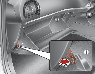 With the glove box open, pull the support strap (1).
