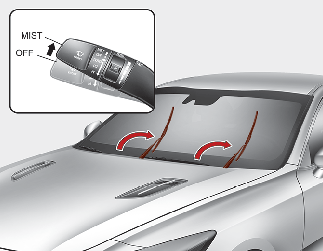 After turning off the engine, move the wiper switch to the single wiping (MIST) position within 20 seconds and hold the switch more than 2 seconds until the wiper blade is in the fully up position.