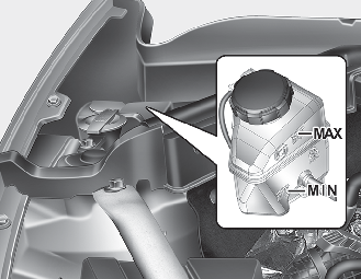 Check the fluid level in the reservoir periodically. The fluid level should be between MAX and MIN marks on the side of the reservoir.