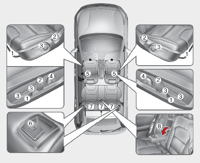 Ställ inte in sätet medan du har säkerhetsbältet på dig. När du flyttar sätet framåt kan du utsättas för ett kraftigt tryck mot magen.