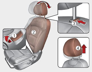 Tryck på nackskyddets spärr (3) samtidigt som du drar nackskyddet uppåt (4).