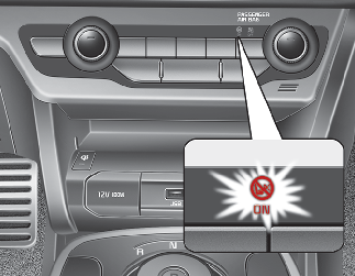 Indikatorn för avstängd frontkrockkudde på passagerarsidan tänds även när krockkuddeknappen ställs på OFF, och släcks när krockkuddeknappen ställs på on.