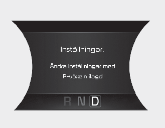Ändra inställningarna efter att du har parkerat ditt fordon, för din egen säkerhets skull, lägg i parkeringsbromsen och växelspaken till P (parkering).