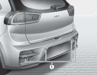 Funktionen är en hjälpfunktion och kan inte ersätta förarens uppmärksamhet och ansvarsfulla uppträdande i trafiken. Sensorområdet och vilka objekt som kan identifieras av de bakre ultraljudssensorerna (①) är begränsat. När du backar ska du vara lika uppmärksam som du skulle vara om bilen inte var utrustd med parkeringshjälp.