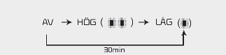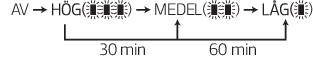 När du trycker på knappen ändras temperaturinställningen på följande sätt:
